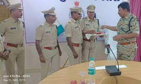 धमतरी। पुलिस महानिरीक्षक रायपुर रेंज आरिफ एच.शेख (भा.पु.से.)द्वारा आदेशानुसार पदोन्नति हेतु जारी योग्यता सूची वर्ष 2023 के अनुसार पुलिस अधीक्षक कार्यालय में पुलिस अधीक्षक प्रशांत ठाकुर एवं अतिरिक्त पुलिस अधीक्षक मधुलिका सिंह ने पद्दोन्नत हुए चार प्रधान आरक्षक को स्टार लगा कर सहायक उप निरीक्षक पद पर पदोन्नति प्रदान की गई है.